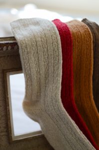 太い糸を使ったローゲージソックス・シルクとウールの二重編みソックス・アームウォーマー・レッグウォーマー
